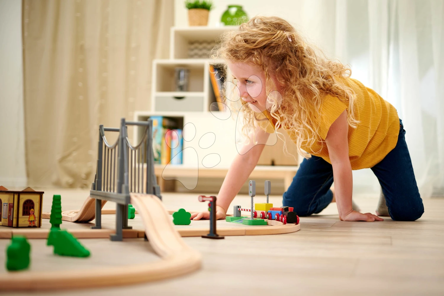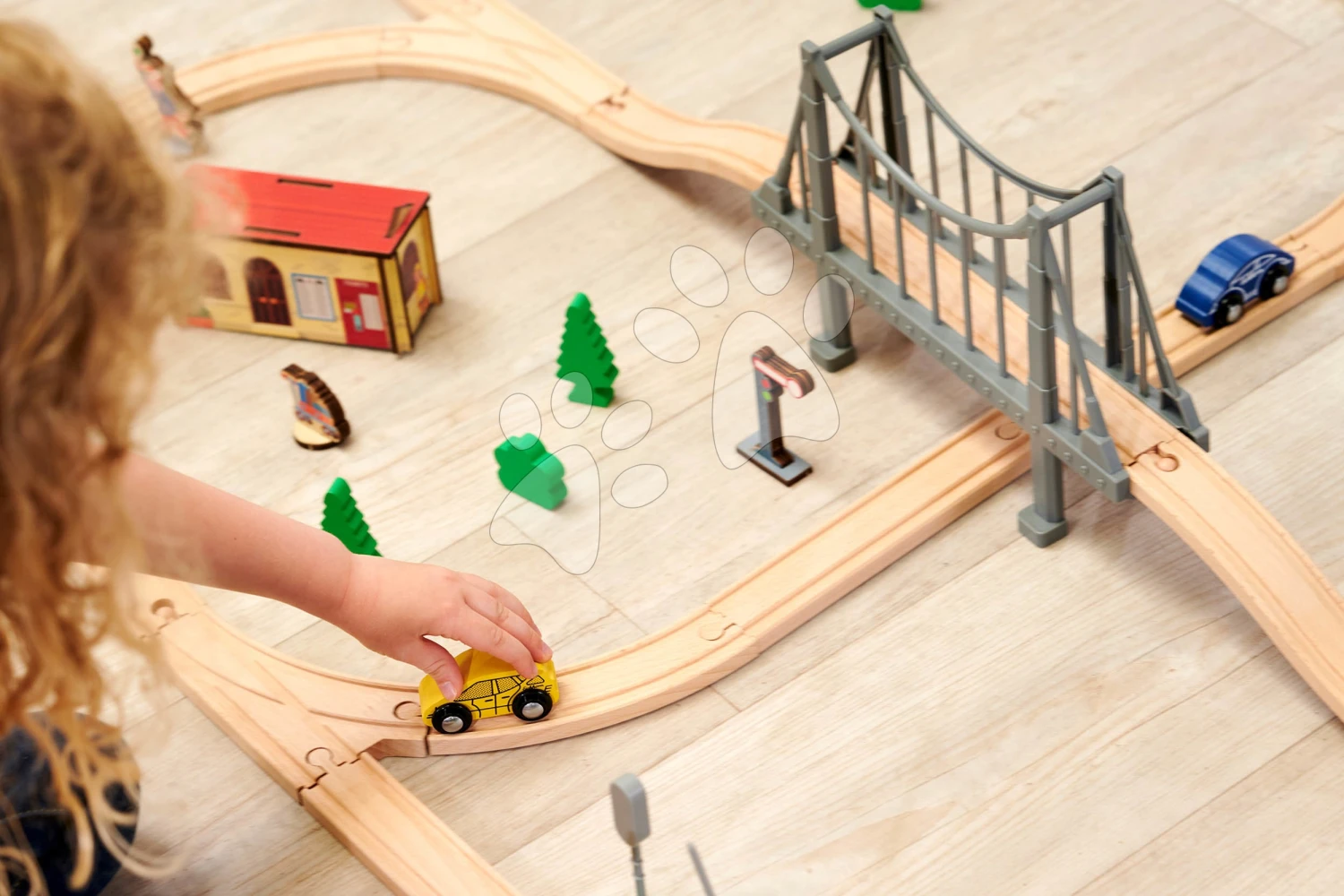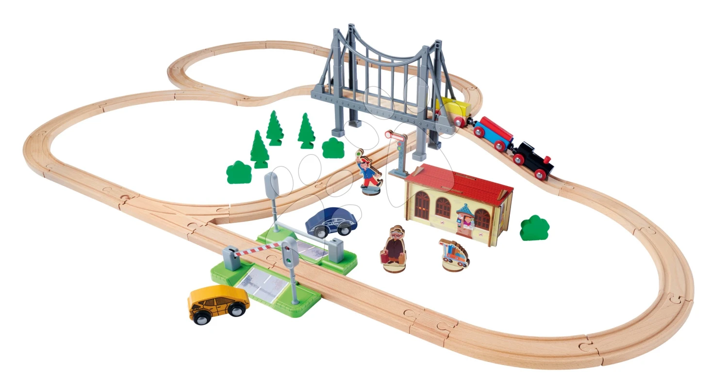 Bahngleis Aus Holz Train Set With Bridge Eichhorn Mit Lokomotive, Waggons, Brücke Und Zubehör, 55 Teile, 500 Cm Schienenlänge