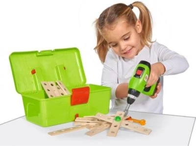 Die Werkzeugbox Constructor von Eichhorn rundet den Spielspaß kleiner Baumeister perfekt ab: Das Set enthält einen Kompakt-Schrauber mit Bits zum Wechseln und Bauteile, die zu neuen Konstruktionen einladen. Werkzeugbox Constructor von Eichhorn 70-tlg. Set: Werkzeugbox, Kompakt-Schrauber inkl. Wechsel-Bits, Schraubenschlüssel, diverse Konstruktionsteile, Schrauben und Muttern aus Kunststoff und nachhaltig angebautem Buchenholz ab 3 Jahren geeignet Made in Germany Die Werkzeugbox von Eichhorn ist die optimale Ergänzung der Baureihe Constructor. Sie gestaltet die Bauvorhaben der Kids noch realistischer: Die kleinen Nachwuchs-Handwerker können bei ihren Projekten auf die Unterstützung des Kompakt-Schraubers setzen. Mit ihm macht das Anziehen der verschiedenen Schrauben gleich noch mehr Spaß. Die Bits lassen sich wie bei den Profis einfach austauschen. Zum Lösen der Muttern greifen die Minis auf den Schraubenschlüssel des Sets zurück. Außerdem stehen ihnen verschiedene zusätzliche Bauteile zur Verfügung, die für neue Möglichkeiten beim Konstruieren sorgen. Durch die Beschäftigung mit der Werkzeugbox schulen Kinder ab drei Jahren ihre Feinmotorik. Das Bauen und Konstruieren wirkt sich zudem positiv auf das räumliche Vorstellungsvermögen der Kids aus.