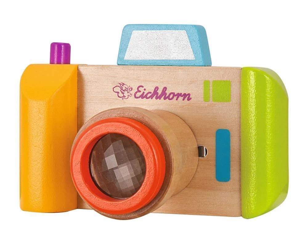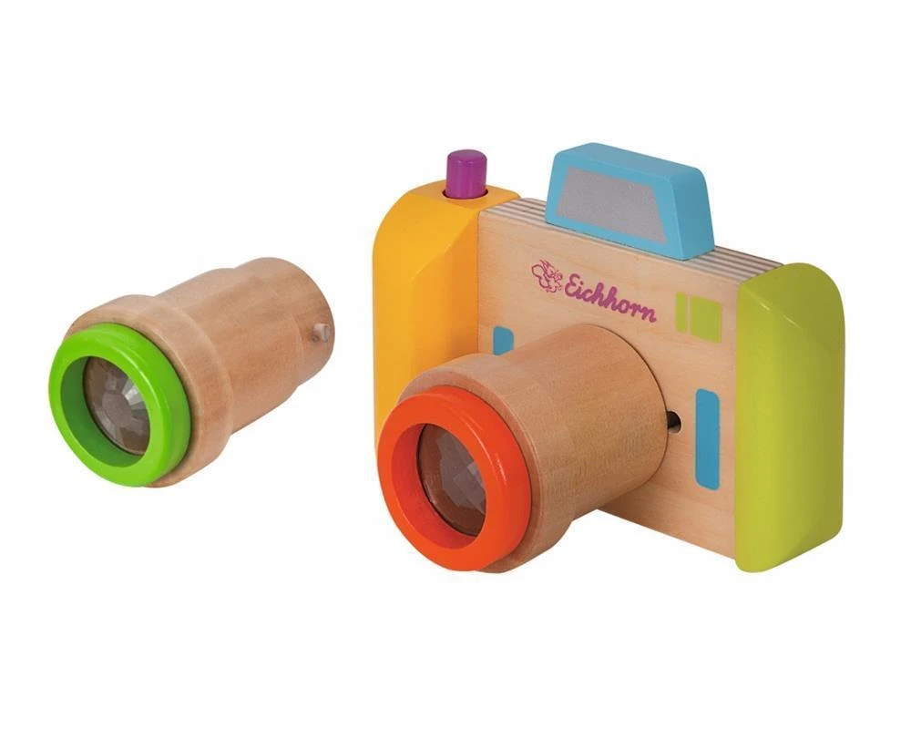 Bei der Kamera aus Holz von Eichhorn lassen sich die Objektive wechseln und durch Drehen der Objektive entstehen tolle Effekte. Beide Objektive haben eine Effekt-Linse. Die kleinen Hobbyfotografen sehen die Welt dadurch mit ganz anderen Augen. Für Kinder ab einem Jahr geeignet.