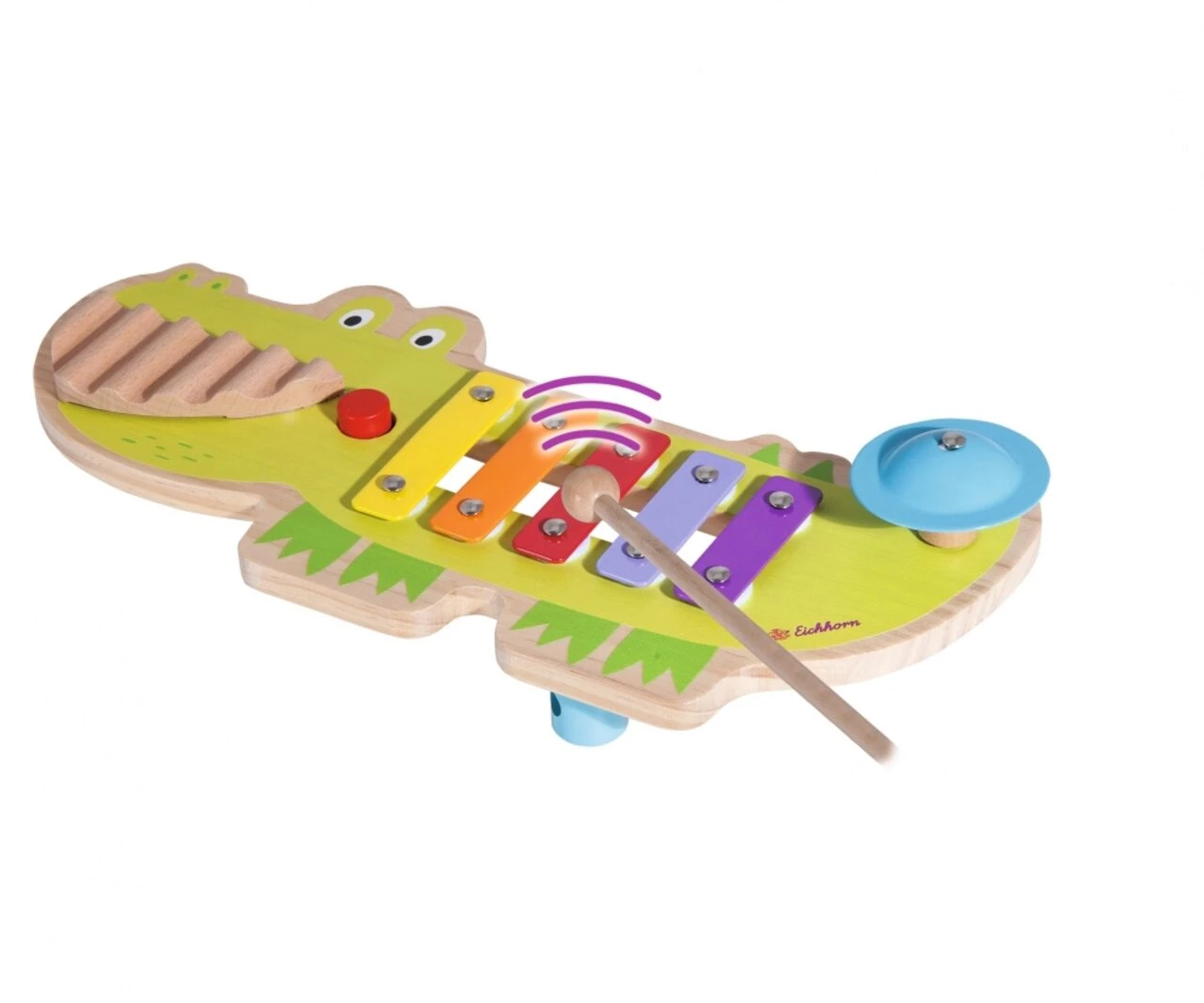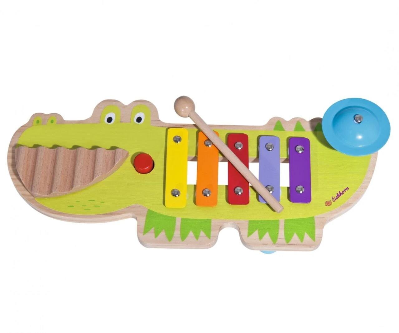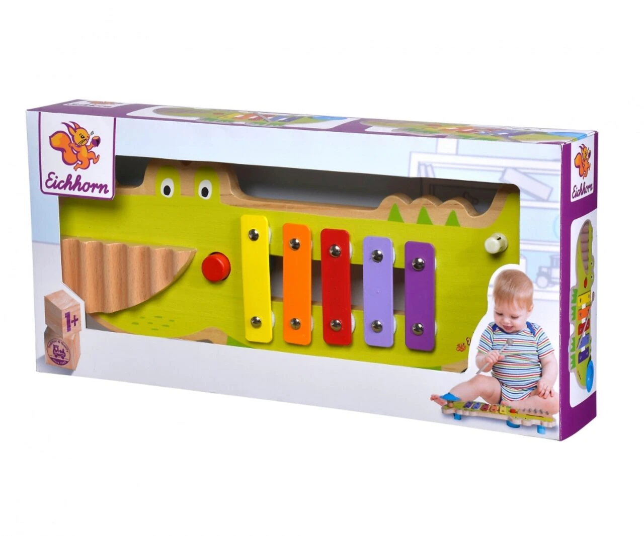 Eichhorn Soundtisch: Der mulitfunktionale Soundtisch besteht aus einem Xylophon, einem Becken, einer Quitsche und einem Waschbrett. Mit dem Tisch wird die Akustik und die Motorik Ihres Kindes gezielt gefördert und geschult. Der Soundtisch ist bunt lackiert und macht tolle Geräusche. Für Kinder ab einem Jahr geeignet.