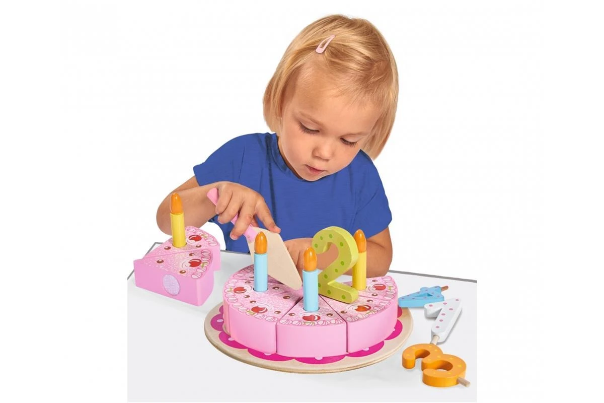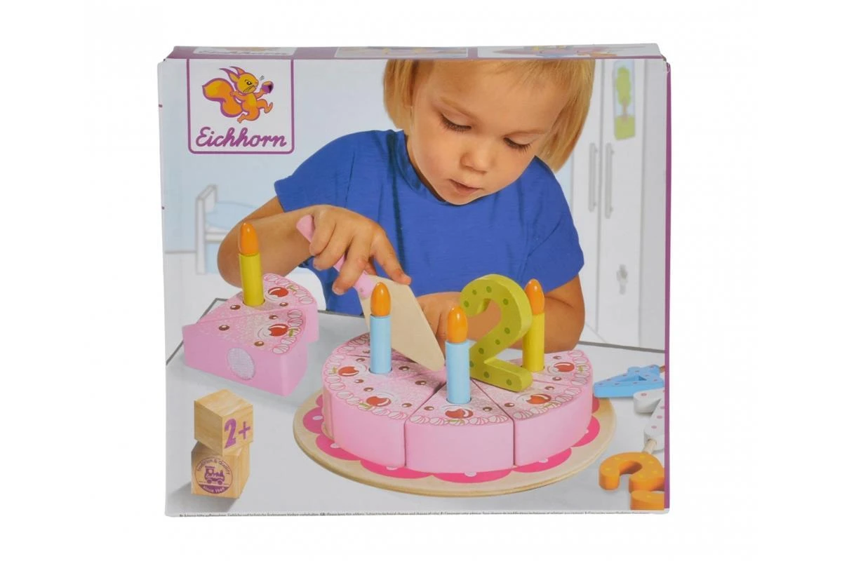 Die ersten Geburtstage werden mit dem Eichhorn Kuchen gefeiert. Kerzen und Alter werden auf den Kuchen gesteckt und mit dem Tortenheber werden Stücke, welche mit Klett aneinander befestigt sind, geschnitten und an die Gäste verteilt. Im Set ist eine Kuchenplatte, 8 Kuchenstücke, 4 Kerzen, die Zahlen 1,2,3 und 4 für die ersten vier Geburtstage und ein Tortenheber enthalten. Der Kuchen hat einen Durchmesser von 20cm, ist nicht essbar und für Kinder ab 2 Jahren geeignet.