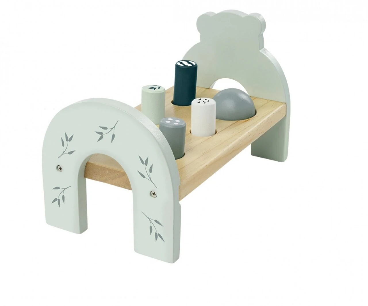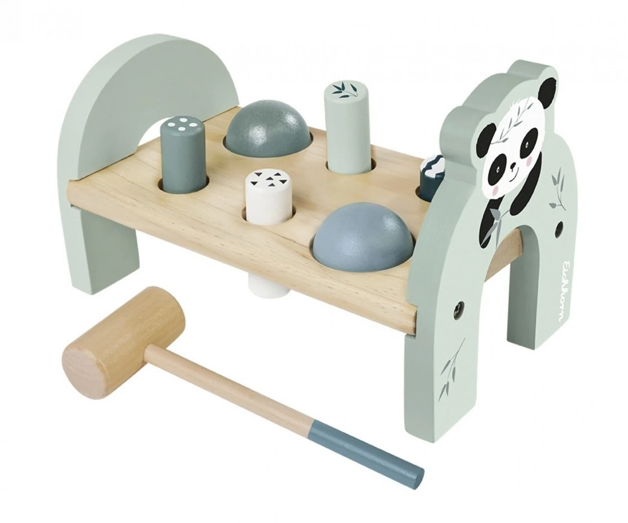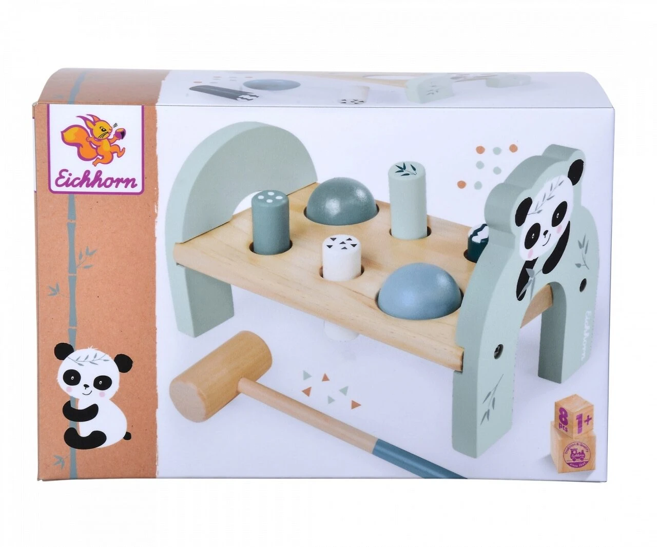Eichhorn Klopfbank: Die sechs verschieden farbenen Stifte und Kugeln müssen mit dem Hammer durch die Löcher der 23×12,5×14,5cm großen Eichhorn Klopfbank geschlagen werden. Die Klopfbank fördert die Motorik und ist für Kinder ab einem Jahr geeignet.