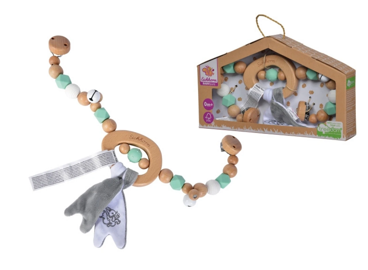 Mit Eichhorn BabyPure kann das Baby naturverbunden und nachhaltig die Welt erkunden. Die hochwertige Wagenkette aus Buchenholz hat unterschiedliche haptische Reize. Die unterschiedlichen Fühlperlen und der Knisterstoff werden zu einem Sinneserlebnis für die kleinen Händchen und ein Blickfang für die Augen. Für die Herstellung der Eichhorn Wagenkette wird ausschließlich FSC® 100% Holz aus nachhaltiger Forstwirtschaft verwendet. Für Babys ab dem ersten Lebensmonaten geeignet.