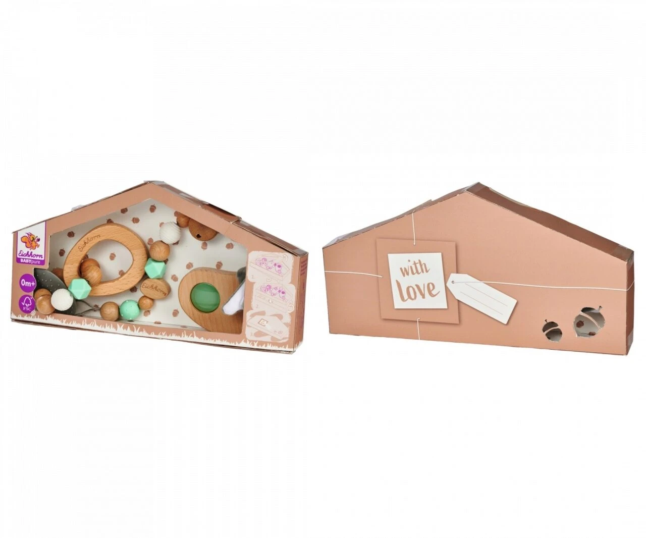 Eichhorn BabyPure, Geschenkset: Mit Eichhorn BabyPure kann das Baby naturverbunden und nachhaltig die Welt erkunden. Das dreiteilige Geschenkset, bestehend aus einer Schnullerkette, einem Beißring und einem Greifling, lässt keine Wünsche offen. Die drei Artikel aus hochwertigem Buchenholz haben unterschiedliche haptische Reize. Die unterschiedlichen Fühlperlen, die Beißplatte oder das Stoffelement mit Knisterfolie wird zu einem Sinneserlebnis für die kleinen Händchen und ein Blickfang für die Augen. Für die Herstellung des Eichhorn Geschenksets wird ausschließlich FSC® 100% Holz aus nachhaltiger Forstwirtschaft verwendet. Für Kinder bereits ab den ersten Lebensmonaten geeignet.