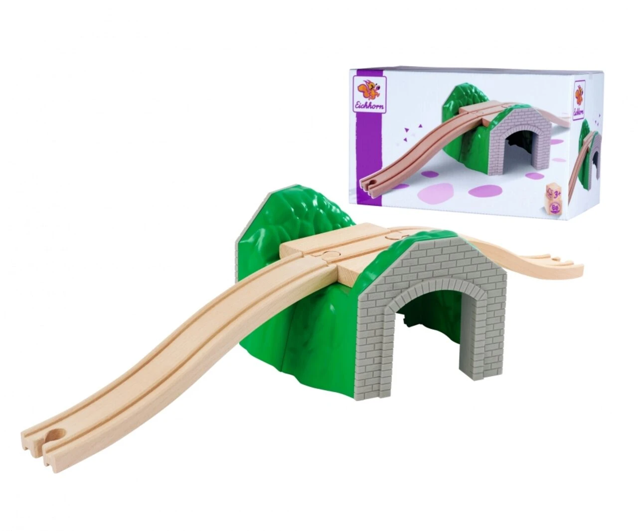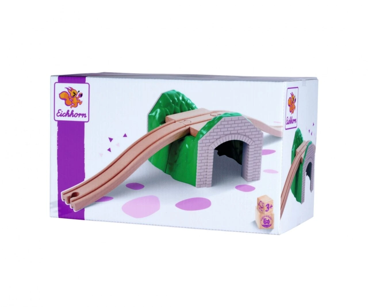 Eichhorn Bahn, Tunnel: Der Eichhorn Tunnel ist eine tolle Ergänzung für Schienenbahnen. Der Tunnel bietet Möglichkeiten zur Durch- und Überfahrt von Zügen. Für die Herstellung der Eichhorn Schienenbahn wird ausschließlich FSC® 100% Holz aus nachhaltiger Forstwirtschaft verwendet. Sie ist mit fast allen Schienenbahnen kombinierbar. Für Kinder ab 3 Jahren geeignet.