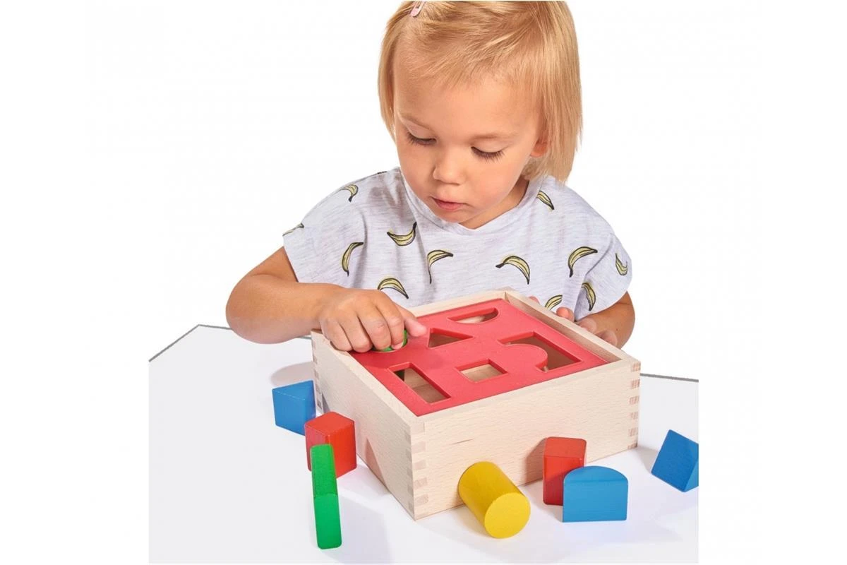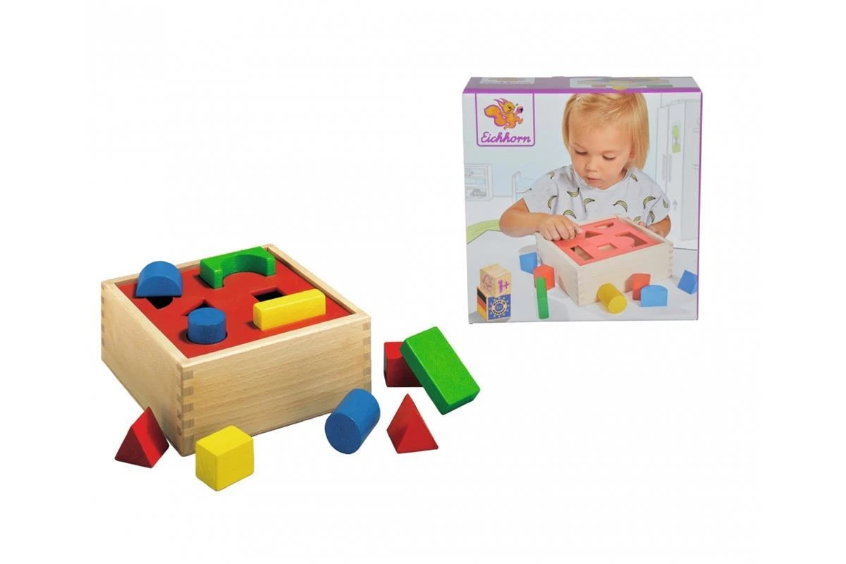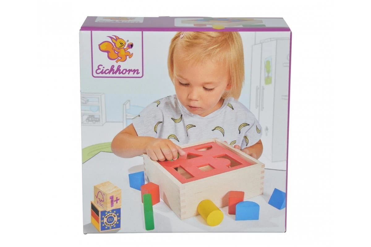 Eichhorn Holzbox-Steckspiel: Bei dem Eichhorn Holzbox-Steckspiel passt jeder Stein nur in das Loch mit der gleichen Form. Die Steine können durch Abheben des Deckels wieder aus der Holzbox genommen werden. Für Kinder ab 2 Jahren geeignet.Für die Herstellung des Eichhorn Holzbox-Steckspiels wird ausschließlich FSC® 100% Holz aus nachhaltiger Forstwirtschaft verwendet.