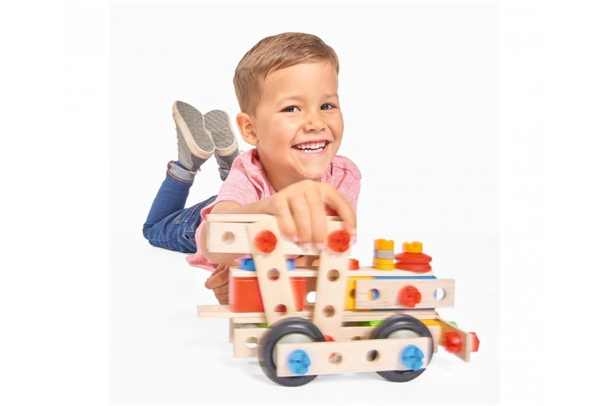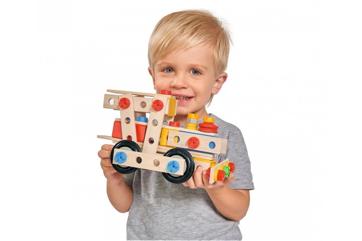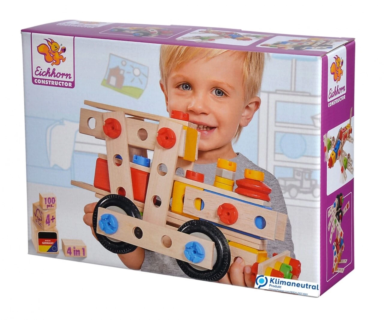 Eichhorn Constructor 100-tlg.: Baue dir aus dem 100-teiligen Eichhorn Constructor Set ein tolles Modell. Mit Hilfe der mitgelieferten Werkzeuge, der Anleitung und den Schrauben werden die 100 Holzteile und Verbindungselemente miteinander fixiert und das Modell entsteht. Das Zusammenfügen fördert und schult das räumliche Denken und die Feinmotorik. Modellvarianten bei diesem Set: große Lok, Flugzeug, Abschleppwagen, Roboter. Für Kinder ab 4 Jahren geeignet. Für die Herstellung der Eichhorn Artikel wird ausschließlich FSC® 100% Holz aus nachhaltiger Forstwirtschaft verwendet