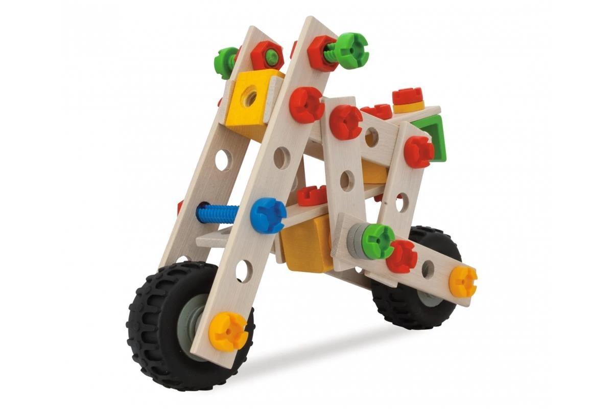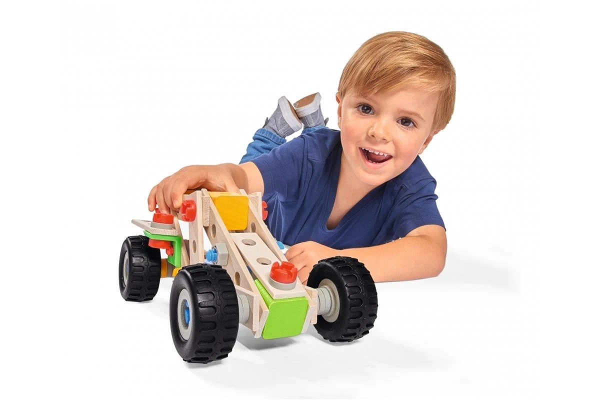 Eichhorn Constructor 100-tlg.: Aus dem 100-teiligen Eichhorn Constructor Set kann mit der Anleitung ein Quad, ein Trike, ein Minibuggy oder ein Motorrad zusammengeschraubt werden. Mit Hilfe der mitgelieferten Werkzeuge, der Anleitung und den Schrauben werden die Holzteile und Verbindungselemente miteinander fixiert und die Modelle entstehen. Natürlich können nach Fantasie viele weitere tolle Objekte entstehen. Das Zusammenfügen fördert und schult das räumliche Denken und die Feinmotorik. Für Kinder ab 4 Jahren geeignet. Für die Herstellung der Eichhorn Artikel wird ausschließlich FSC® 100% Holz aus nachhaltiger Forstwirtschaft verwendet.
