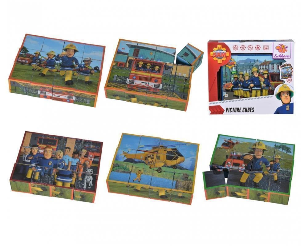 Sam Bilderwürfel: Mit dem Sam Bilderwürfeln können 6 verschiedene Motive gelegt werden. Mit den passenden Vorlagebögen ist das ein Kinderspiel. Ein Motivbogen wird in den Rahmen gelegt und die Steine mit der richtigen Seite nach oben darauf. So entstehen mit den 12 Würfeln die schönen Bilder mit Sam und seinen Freunden. Ein Motiv mit 12 Würfeln ist 16x12cm groß. Dieses hochwertige Holzspielzeug fördert die Motorik und Hand-Auge-Koordination. Die Bilderwürfel sind für Kinder ab 3 Jahren geeignet.