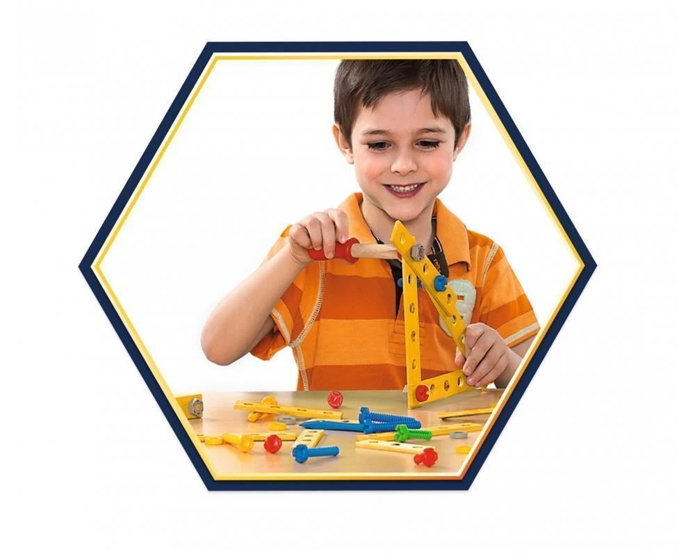 Bob der Baumeister Constructor Bagger, Scoop: Aus dem 142-teiligem Constructor Set Bagger wird mit Schraubenschlüssel und Schraubendreher nach Anleitung das tolle Modell Scoop gebaut. Natürlich sind der Fantasie keine Grenzen gesetzt und es können auch andere Figuren oder Bauwerke zusammengeschraubt werden. Die Klötze, Leisten, Räder, Schrauben oder Muttern sind individuell miteinander verbaubar. Für die Herstellung der Bob Constructor Modelle wird ausschließlich FSC® 100% Holz aus vorbildlicher Forstwirtschaft verwendet. Verbaubar mit allen anderen Eichhorn Constructor-Sets. Für Kinder ab 5 Jahren geeignet.