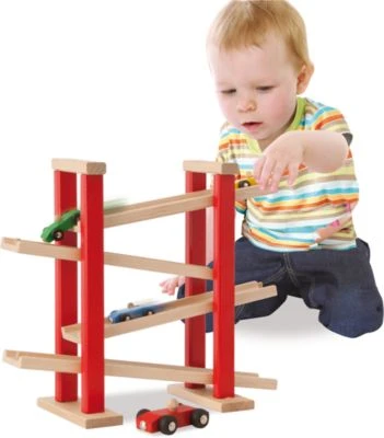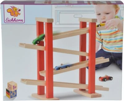 Die Auto-Rennbahn von Eichhorn mit vier Etagen sieht klasse aus und ist für Kinder eine wunderbare Beschäftigungsmöglichkeit. Die Rennautos starten auf der obersten Ebene und fahren dann von selbst im Zick-Zack alle 4 Etagen nach unten.