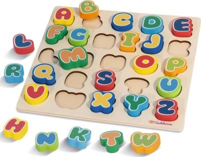 Mit dem tollen Buchstaben-Steck-Puzzle von Eichhorn lernen Kinder spielerisch die Buchtstaben kennen.