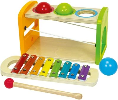 + 5 Teile: Klopfbank, Xylophon (ganze Oktave), 3 Kugeln, Klöppel