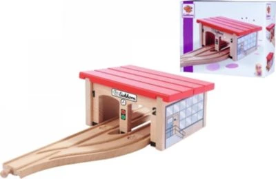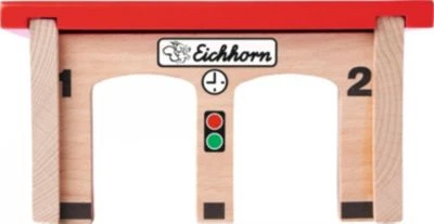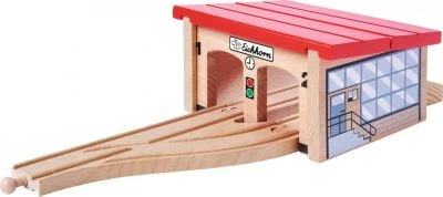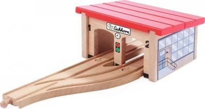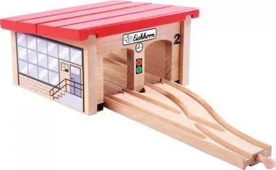 Hier kommt ein neues Zuhause für die kleinen Züge der Eichhorn-Bahn! Mit dem 6-teiligen Bau- und Spieleset „Lokschuppen“ von Eichhorn können die Loks und Waggons jetzt nachts ordentlich geparkt werden. Der große Lokschuppen hat 2 Tore und kommt mit Schienenelementen, einer Weiche und 2 Prellböcken.