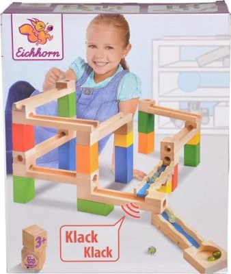 Die 35-teilige Kugelbahn von Eichhorn vereint Konstruktion mit Kugelspaß. Eichhorn Großer Kugelbahn-Bausatz, 35-tlg. ab 3 Jahren 2 Funktionsschienen, Säulen, Kugeln, Schienen, Auffangschale und Verbindungsstücke aus Birken- und Kiefernholz Die unterschiedlichen Säulen, Schienen und Auffangschalen lassen sich durch die Verbindungsstücke flexibel zusammenbauen, sodass immer neue Bahnen entstehen. Anschließend kann der Kugelspaß losgehen. Besonders die zwei Klangplatten bringen Kinderaugen zu stauen. Der ultimative Spielspaß für Jung und Alt ist für Kinder ab drei Jahren geeignet.