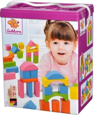 Mit den 75 bunten Holzbausteine von Eichhorn können die Kleinen sich ihre eigene kleine Welt bauen. Unterschiedliche Formen wie Säulen und Blöcke können nach Belieben gestapelt und sortiert werden. Besonders praktisch ist die Aufbewahrungsbox mit Kordel und Sortierdeckel. Für die Herstellung der Eichhorn Artikel wird ausschließlich FSC® 100% Holz aus nachhaltiger Forstwirtschaft verwendet. Für kleine Baumeister ab einem Jahr geeignet.