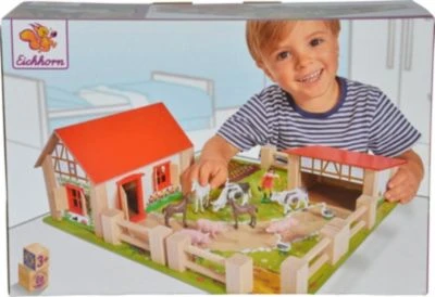 Tierischen Spaß erlebst du auf dem Eichhorn Bauernhof. Auf der Spielplatte gibt es Wege, ein kleines Beet und Wiesen für die Tiere zum Leben. Die Bäuerin wohnt im Bauernhaus und die Tierchen in einem großen, gemütlichen Stall.