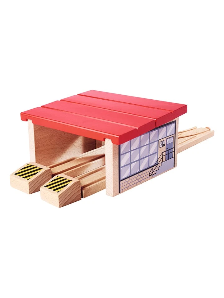 – Inhalt: 1x Gebäude, 1x Weiche, 2x gerade Schienen, 2x Prellbock