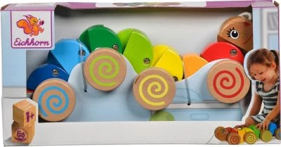 Die lange Nachziehraupe von Eichhorn folgt kleinen Lauflernern auf Schritt und Tritt. Nachziehspielzeug Raupe, 32cm mit Bewegung ab 12 Monaten aus Buchenholz Warme Farben und ein fröhliches Gesicht machen die Raupe zu einem liebenswerten Begleiter für Zuhause und unterwegs. Die Raupe animiert die Kleinen sich zu Bewegen und fördert so ihre Mobilität. Vor allem die wellenartigen Bewegungen der Raupe sorgen beim Hinterherziehen stets für Unterhaltung. Kinder ab einem Jahr werden es lieben, das Nachzieh-Spielzeug aus Buchenholz an der Nase rumzuführen.