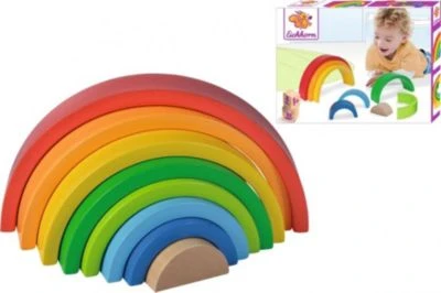 Der farbenfrohe Eichhorn Regenbogen begeistert als Sortier- und Stapelspielzeug. Mit den acht Bögen kann prima gespielt werden und sie können auf viele unterschiedliche Weisen sortiert oder gestapelt werden. Dabei werden auf spielerische Weise die Kreativität und die Feinmotorik der Kinder gefördert. Der Regenbogen ist für Kinder ab einem Jahr geeignet.