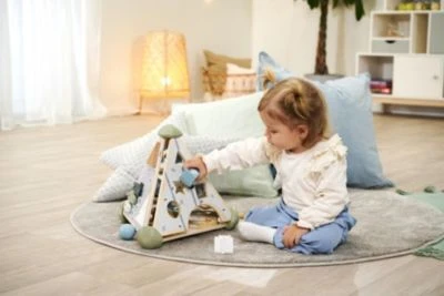 Die große Spielcenter-Pyramide von Eichhorn besteht aus 16 Teilen und beinhaltet eine bunte Palette verschiedenster Spielelemente wie eine Kugelbahn, Musikfunktionen sowie ein Steck- und Memospiel. Das hochwertig verarbeitete Spielcenter zum Zusammenbauen ist hauptsächlich aus Birkenholz gefertigt und wurde speziell entwickelt, um die Koordination und Feinmotorik von Kleinkindern zu schulen und zu fördern. Jede Seite fördert die Motorik und Hand-Augen-Koordination der Kinder auf eine andere Art und Weise.