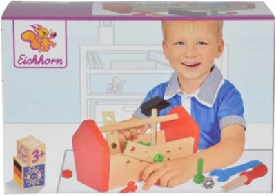 Mit dem Werkzeugkasten können die kleinen angehenden Handwerker ihre motorischen Fähigkeiten entwickeln und verbessern. In der Werzeugbox sind Schrauben, Verbindungselemente, Schraubenzieher, Hammer und vieles mehr enthalten.