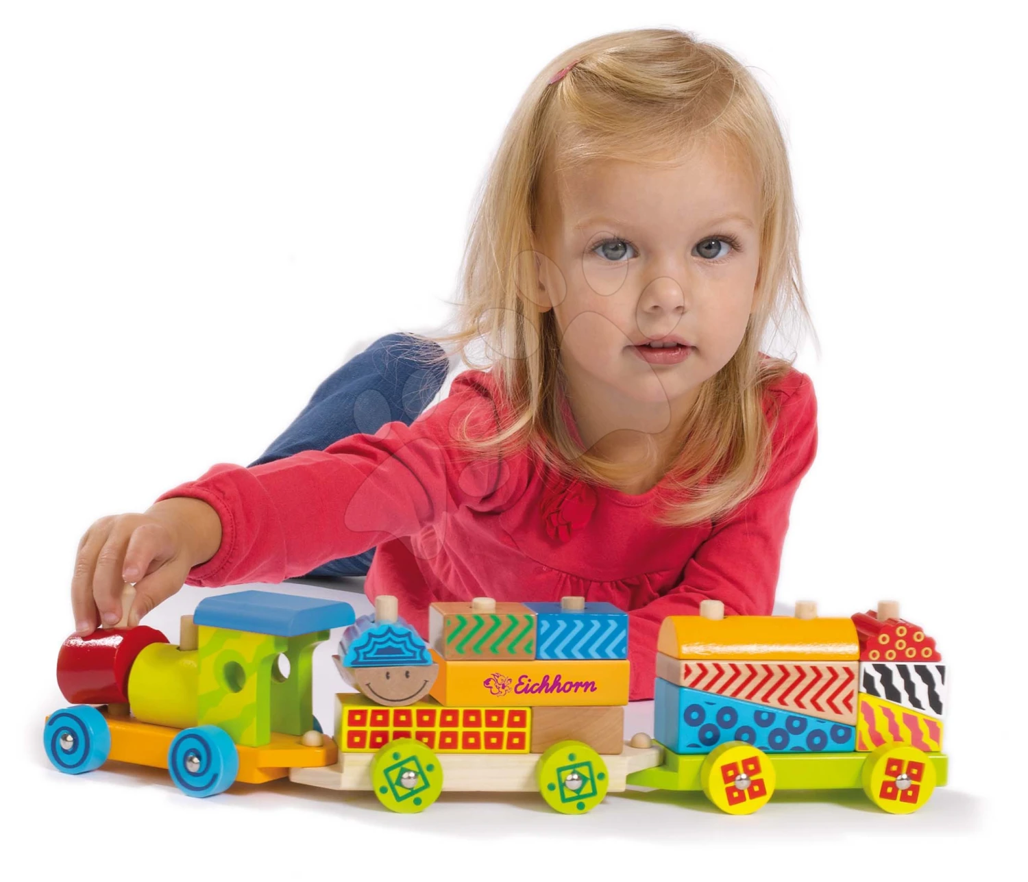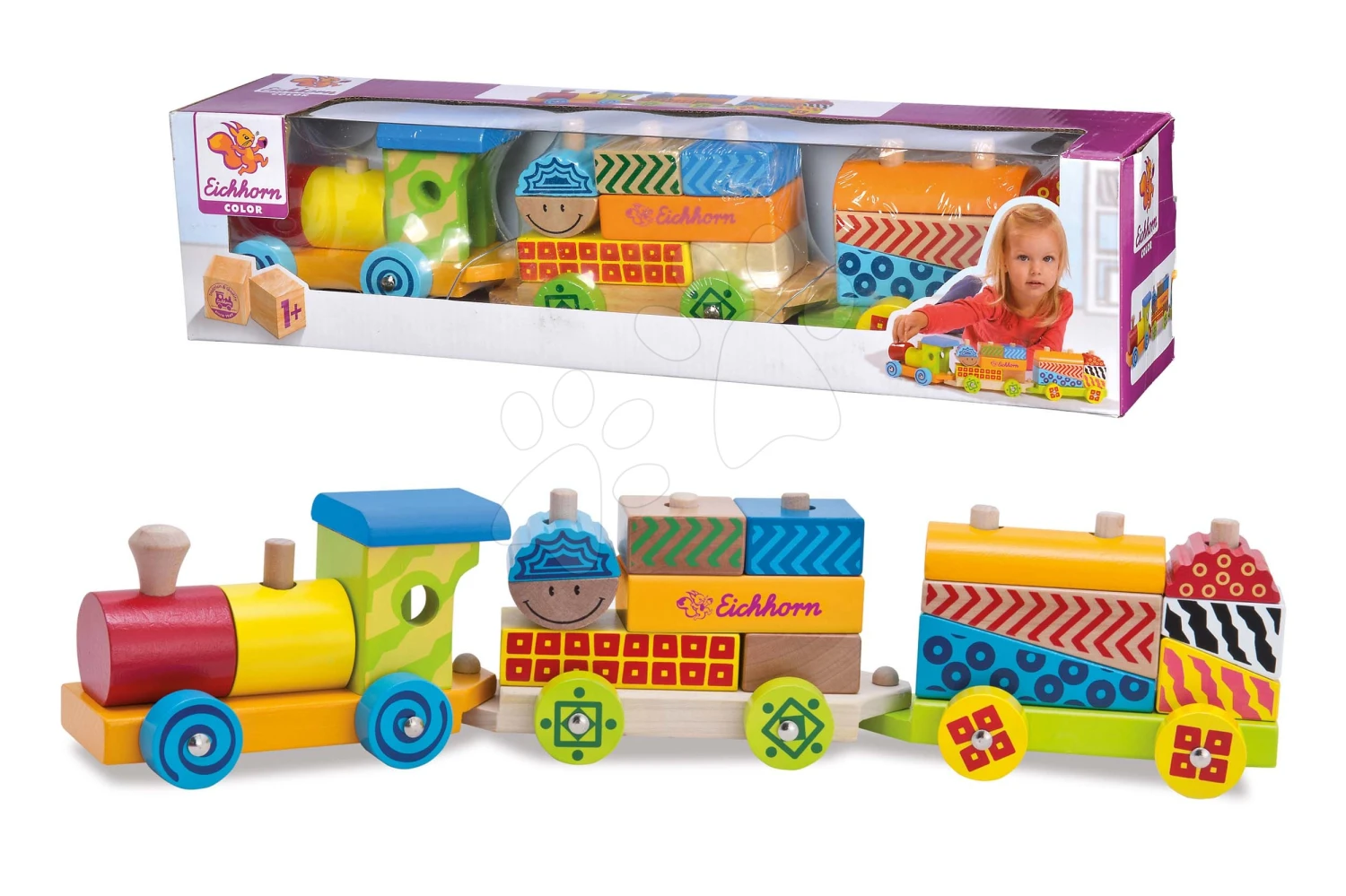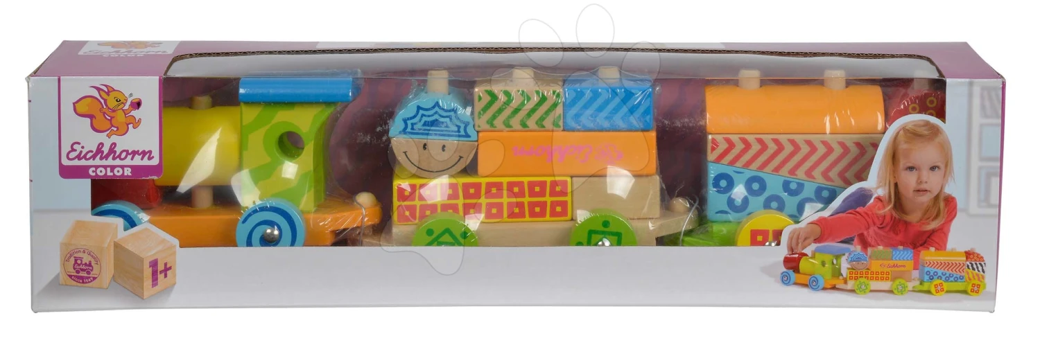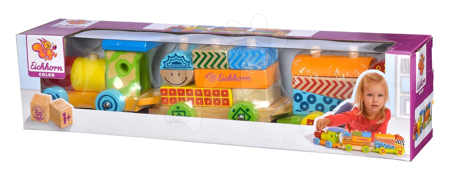 Holzeisenbahn Mit Würfeln Color Small Train Eichhorn Lokomotive Mit 2 Waggons 18 Teile Ab 12 Monaten