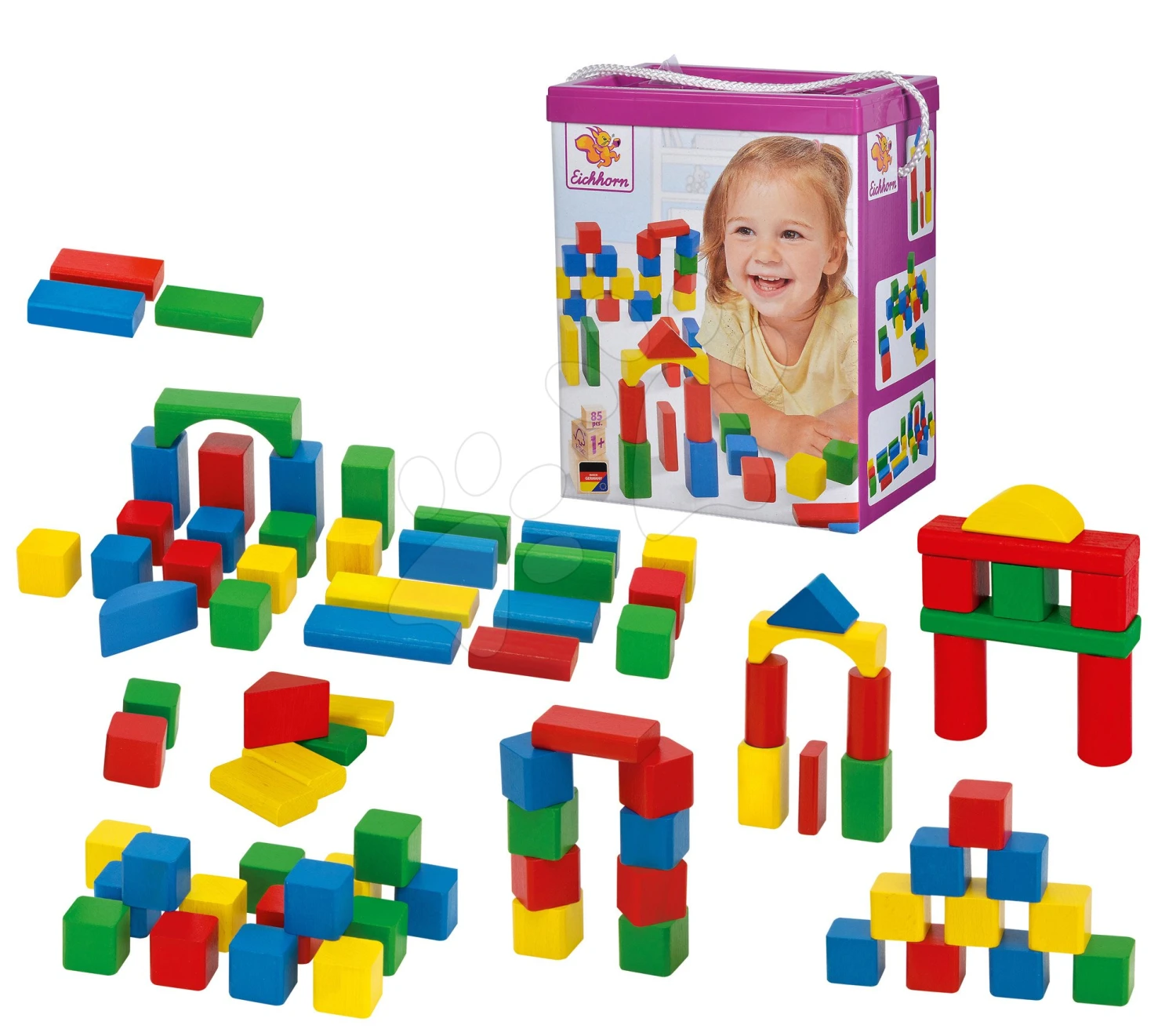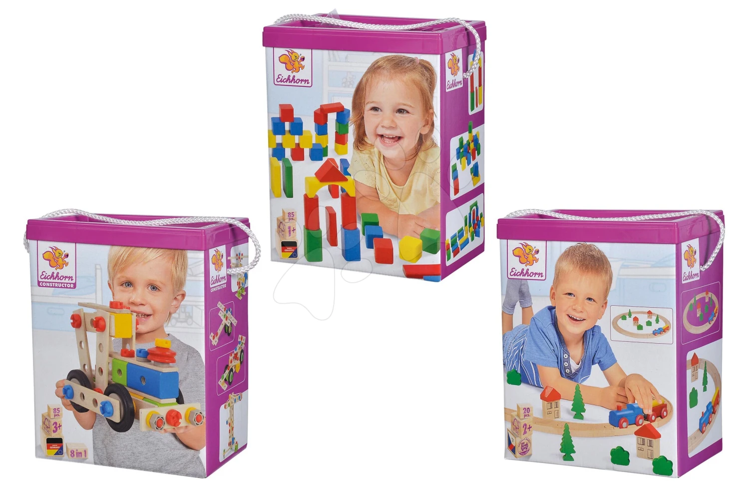 Holzset Wooden Toy Assortment 3in1 Eichhorn Bahngleis 20 Teile Bausatz 85 Teile Und Würfel 85 Teile Von 1-3 Jahren