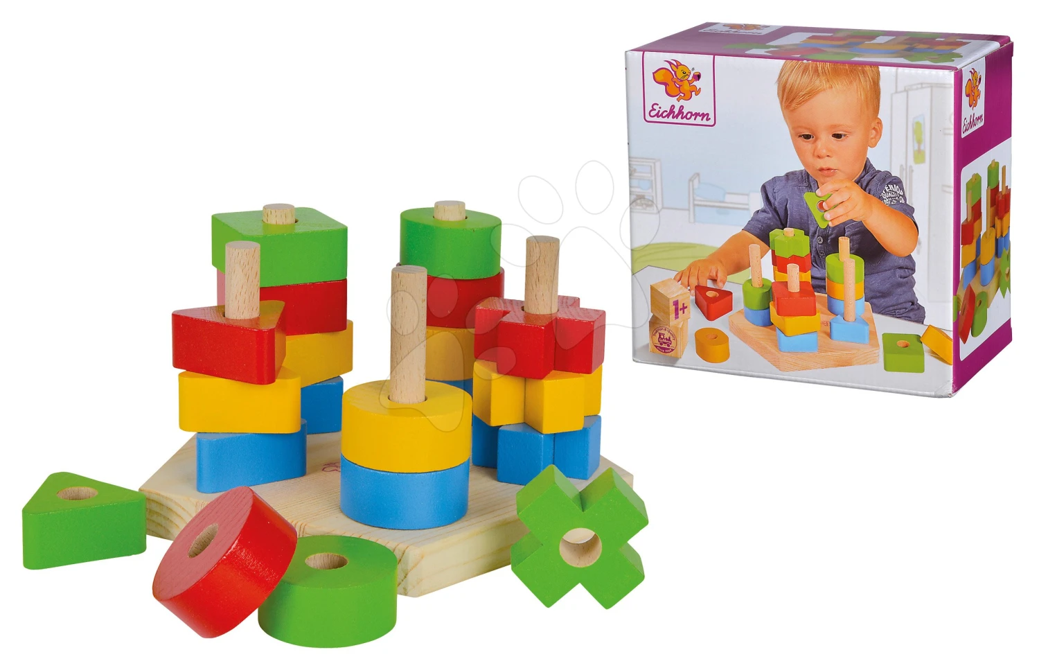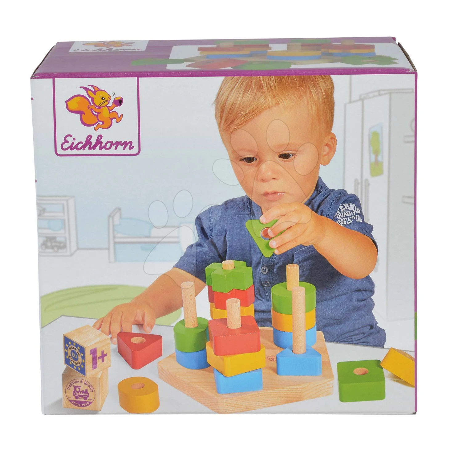 Puzzleturm Aus Holz Stacking Toy Eichhorn Mit 5 Verschiedenen Farbformen 21 Teile Ab 12 Monaten