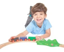 Holz-Eisenbahn Wooden Toy Eichhorn Mit Zubehör Häuser Und Bäume 20 Teile